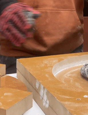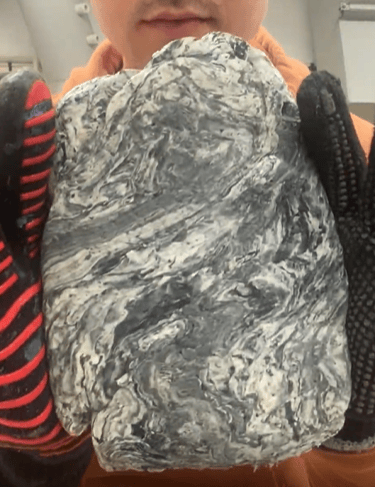 Through material experimentation with pressed recycled HDPE, we discovered we could deliberately control colour, veining and surface quality to create beautiful, stone-like sheets from plastic that would otherwise be downcycled or exported as waste.